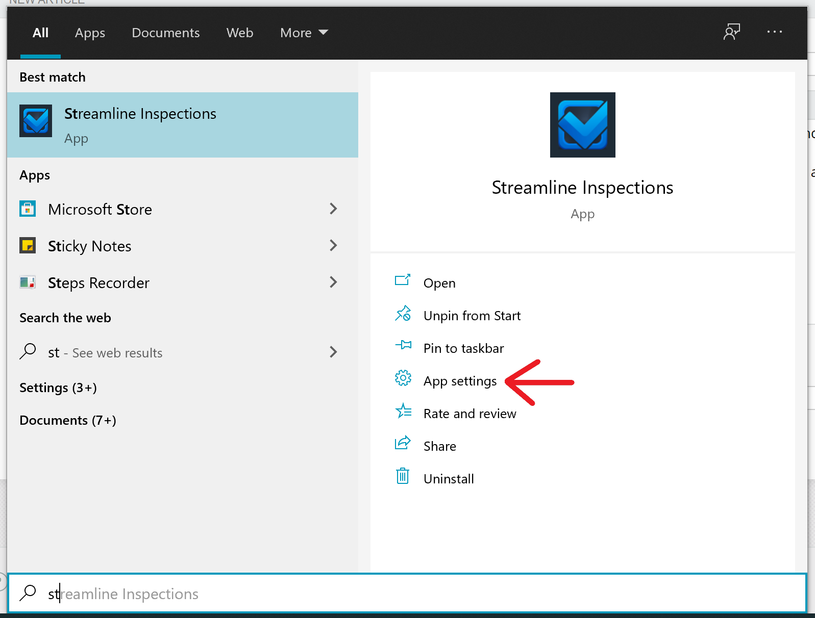 Step 3) select app settings